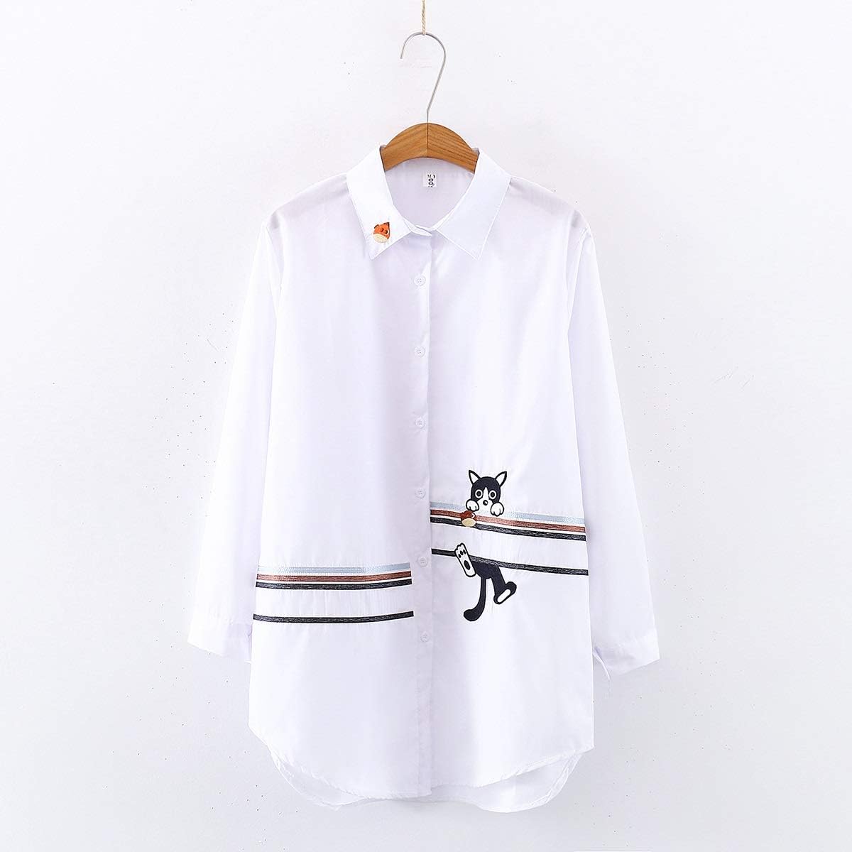 No Brands Ladies Long Sleeve Embroidered White Cartoon Cat Shirt Colour Cat Size L Amazon De Fashion